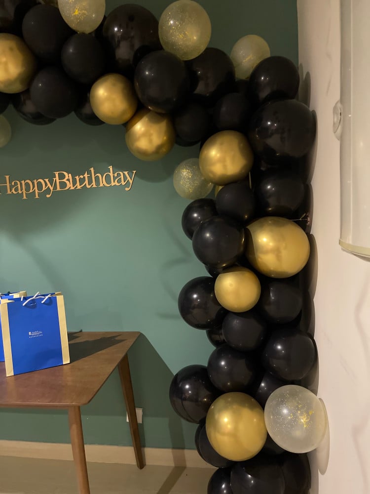 تنسيق بالون عيد ميلاد بالون الاسود فخم والذهبي كروم الاسباني